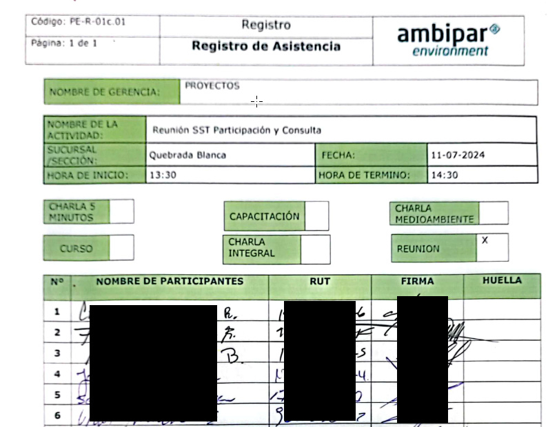 Tipos de datos expuestos: registros de asistencias, investigación de accidentes, evaluación de riesgos, certificados, declaración de incidentes.